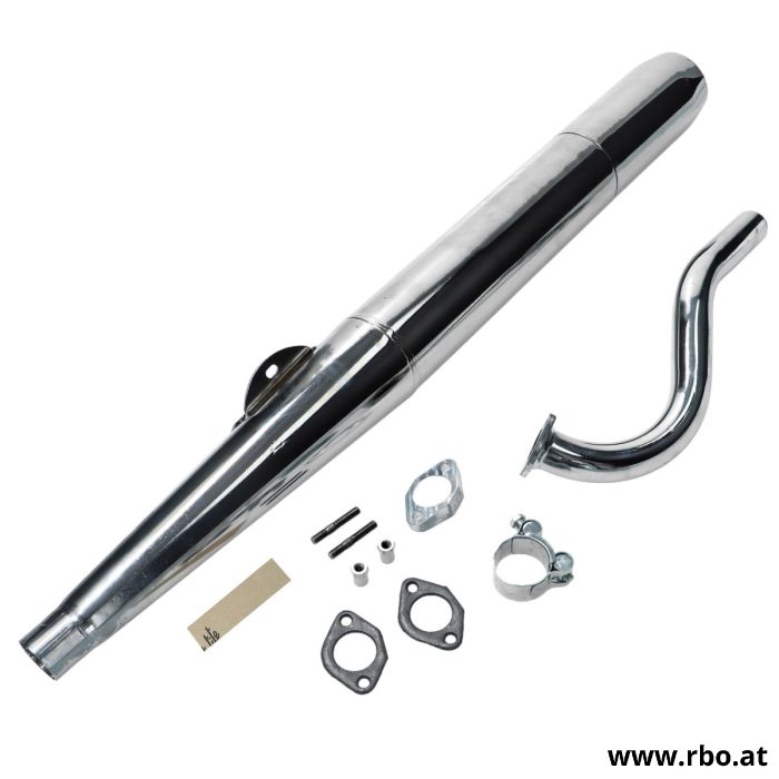 • Klassische Auspuffanlage mit 28 mm Krümmer und Schelle verchromt