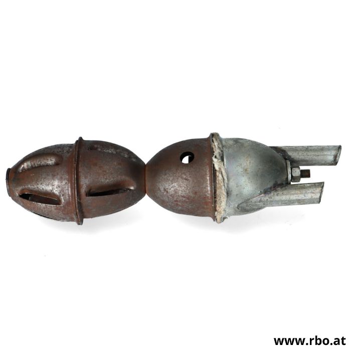 Das Endstück ist verzinkt, die anderen Teile aus Schwarzblech. wegen der langen Lagerzeit von über 50 Jahren, haben diese leichten Rostansatz, was der Funktion aber nicht schadet.