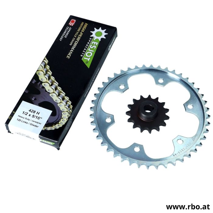 Ritzel 15 Zähne, Kettenrad 44 Zähne, Kette 120 Glieder