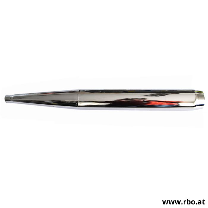 Replica Auspuff mit sehr guter Leistungsentfaltung, glatte Aussenfläche ohne Halterung, zur Befestigung mittels externer Schelle, passend zu Auspuffkrümmer 201.342 mit 28mm Aussendurchmesser.