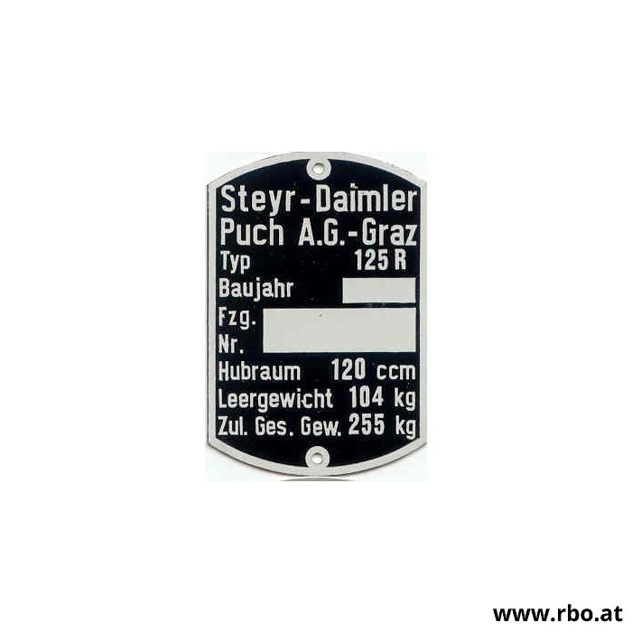 Typenschild PUCH 125 R